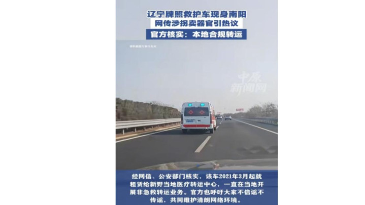 辽宁牌照救护车来南阳是“拐卖儿童”、“贩卖器官”?官方回应