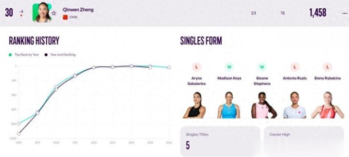 kpl外围投注 郑钦文跌至第 30, 下周将失金花一姐, 王欣瑜行将反超