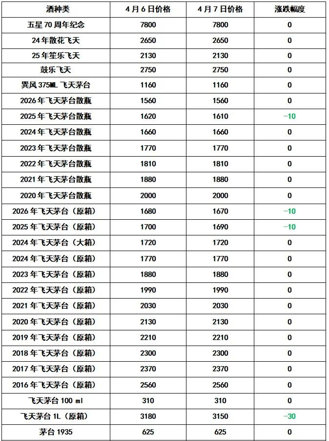 王者荣耀比赛投注 全线跌跌跌! 2026年4月7日 - 飞天茅台和生肖酒逐日行情价钱