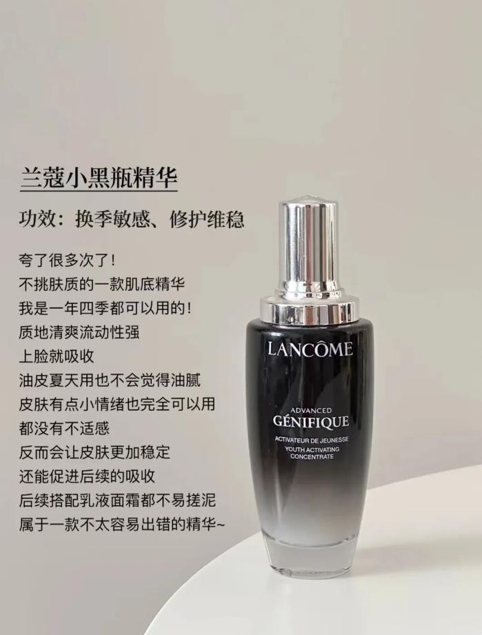 是每个大干皮作念功课时都绕不开的一支,初学精华,主打的修护抗老,来永远改善皮肤的精良透亮度,敏皮泛泛用来维稳修护也很棒,会发现自己的皮肤樊篱修厚了好多,不那么容易敏了,熬夜后皮肤也不会容易出景色,也可以把它作为肌底液来用。