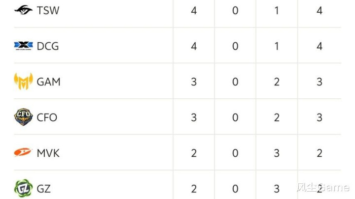 LCP赛区的话,CFO失去中野之后,战力下跌,开赛至今CFO打了5场比赛,战绩3胜2负,先后输给过GAM和DGC,现在排在积分榜首的,是越南队TSW,以及湾湾新崛起的DCG,这两队都是4-1的战绩,看来傻豆的新旅程,好像不太顺利啊,这么打下去的话,CFO可能进不去先锋赛。