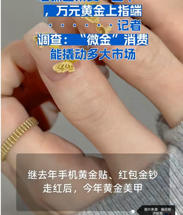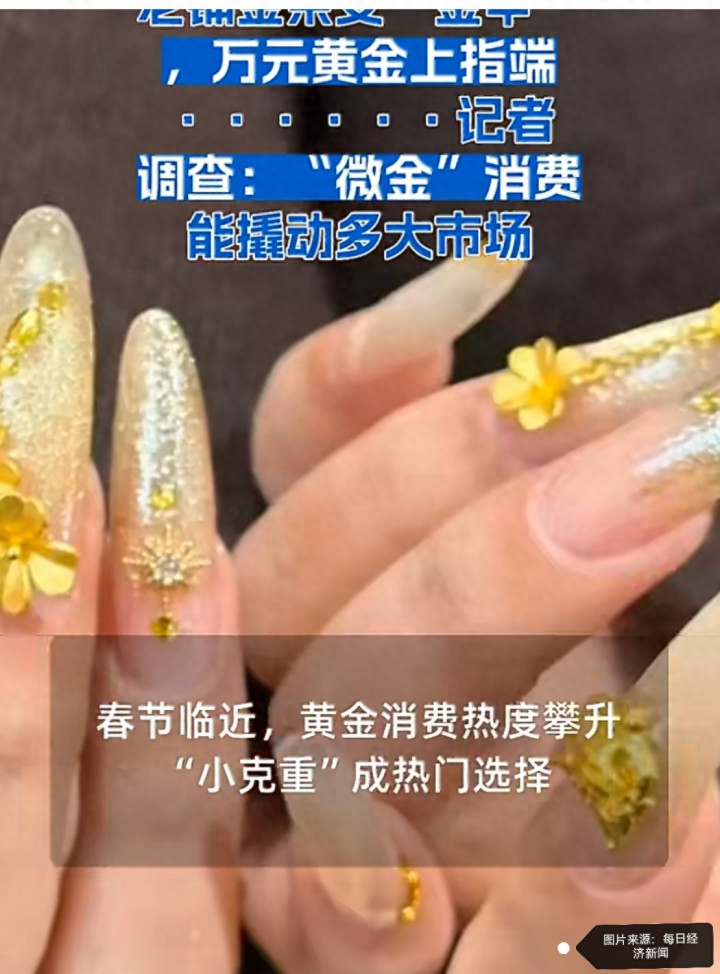 #有东谈主把4万元金饰剪碎作念成好意思甲 #这届年青东谈主把黄金贴在指甲上 #黄金好意思甲成新年酬酢货币