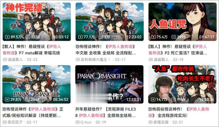 《灵视异闻》这个系列其实在视频平台要更火少许,在B站能刷到不少播放几十万的游戏实况。对许多东谈主来说,文字冒险游戏看起来和玩起来其实没啥不一样,系列两作齐莫得语音,有本领看游戏实况附带的主播配音,弹幕交互,可能更受宽饶。