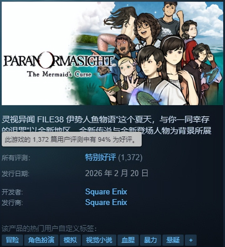 游戏目下已肃穆发售了一个月,在Steam商店页面,《伊势东谈主鱼物语》赢得了超1300条评价,好评率94%。