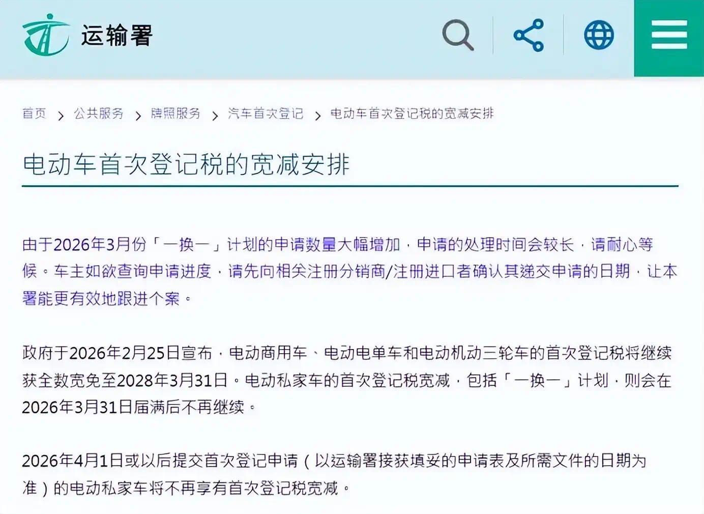 而电车呢?港府章程,要是淘汰燃油车并购入电车,初次登记税最高不错减免17.25万港元。