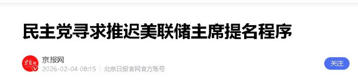 要知道美联储主席的空缺如果持续太久,很可能会影响美国的货币政策稳定,甚至波及全球金融市场,而这场党派之争,最终受伤的或许还是美国自身。