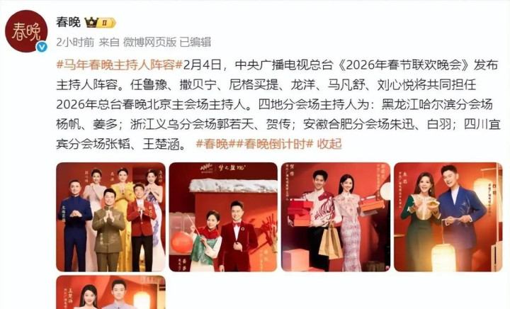 跟着2026年春节的脚步越来越近,距离除夜夜仅剩4天,行为天下不雅众大量关切的文化盛事之一,央视春晚参加了临了的冲刺次第。2月8日,压轴的第四次联排依期举行,这不仅是总共晚会计算的要津期间,亦然节目表和嘉宾声势最终敲定的遑急阶段。从这场联排的声势安排和节目施展来本年的春晚仍旧充满了看点和争议,各样话题飞快在齐集上发酵。