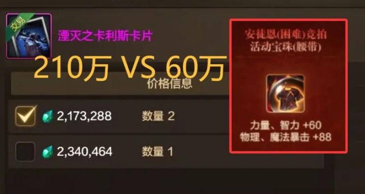 “活动腰带宝珠”60万,而拍卖行“土龙卡”需要210万泰拉,相当于就3折入手了,还算勉强能够接受啦!