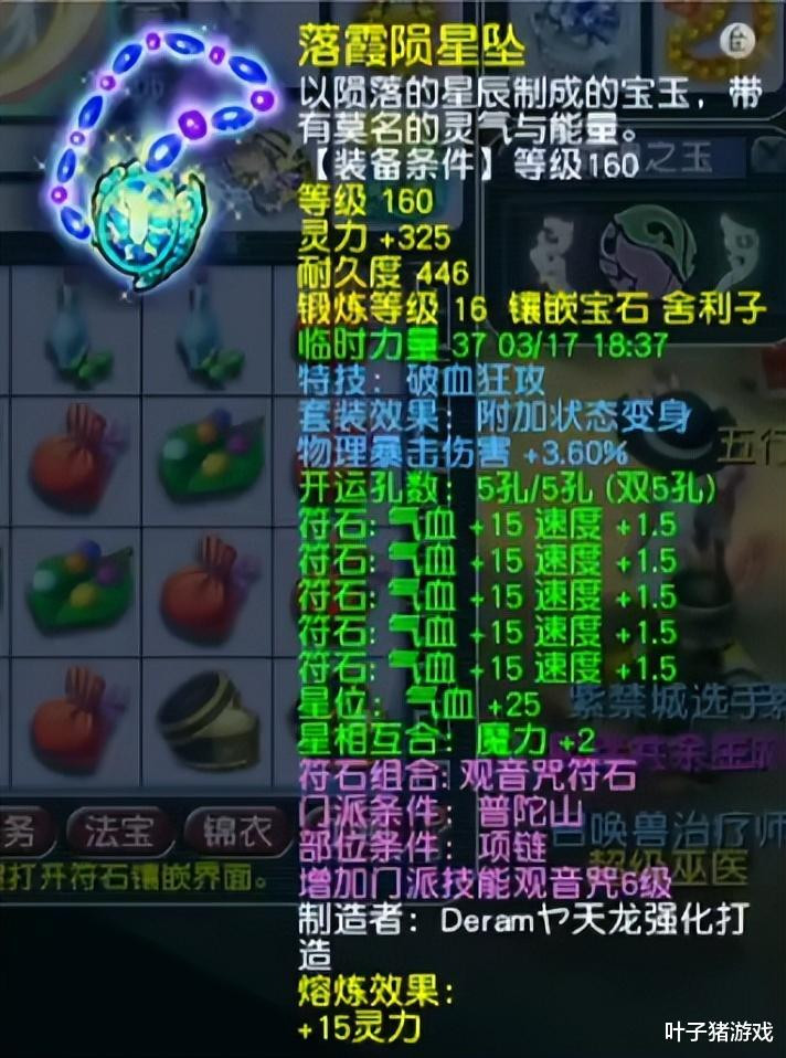 160级破血物暴伤害3.6%的项链,16锻舍利+熔真金不怕火总灵340。当破血搭配力普陀的“瞪眼”,径直无视敌手10%退守,若触发五行克制,有可能两刀将脆皮斩于马下!
