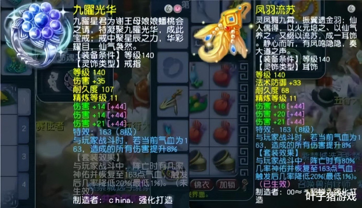 前排灵饰领受七伤害。适度上排伤害35爆7,下排伤害共49爆7;耳环上排法防33爆5,下排伤害共57爆15。