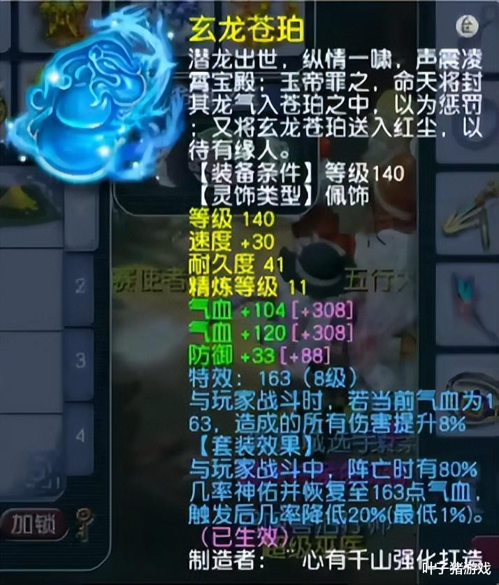 双气血一退守的佩饰,上排速率30满属性,下排退守33爆5、气血共 224爆28。